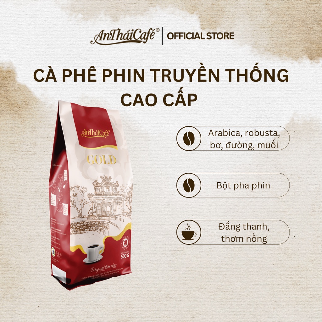 Với đặc thù của kênh quán, AnTháiCafé cho ra đời 4 sản phẩm chuyên dùng đó là: Túi Nâu, Túi Vàng, Túi Bạc, Túi Gold. Với nguyên liệu được tuyển chọn tỉ mỉ kỹ lưỡng từ những hạt cà phê no tròn đầy nắng gió Tây Nguyên, cùng công nghệ hiện tại từ châu Âu, dòng sản phẩm kênh quán được chuyên biệt với từng gu thưởng thức của khách hàng.