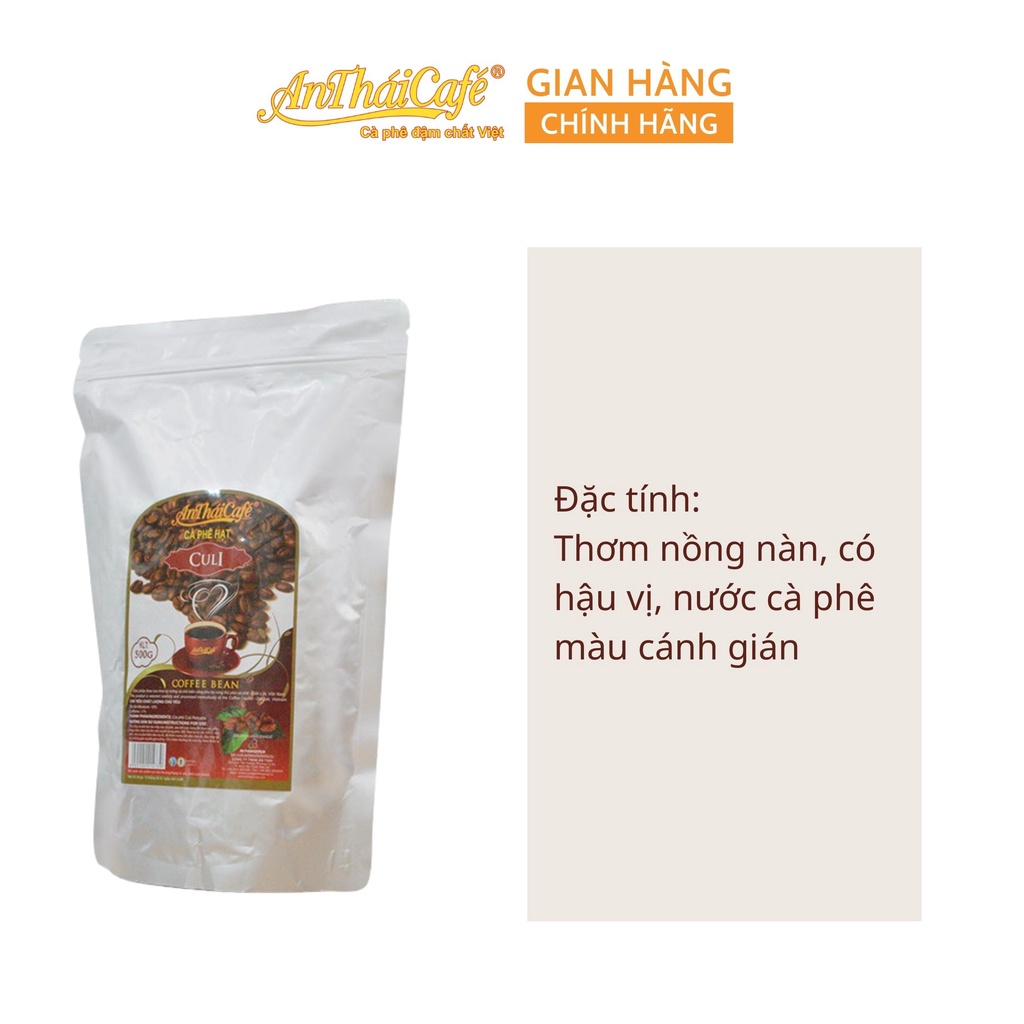 Cà phê hạt rang Culi - AnTháiCafé được rang theo chế độ rang riêng biệt, hợp lý từ những chuyên gia giàu kinh nghiệm và kỹ thuật cao, tạo ra loại sản phẩm được xếp hạng đẳng cấp và “quý giá”. Sản phẩm cà phê hạt rang Culi - AnTháiCafé có nét độc đáo, đậm đà, có chiều sâu, có “cá tính” nổi bật, vượt trội hơn hẳn các hạt cà phê thông thường.
